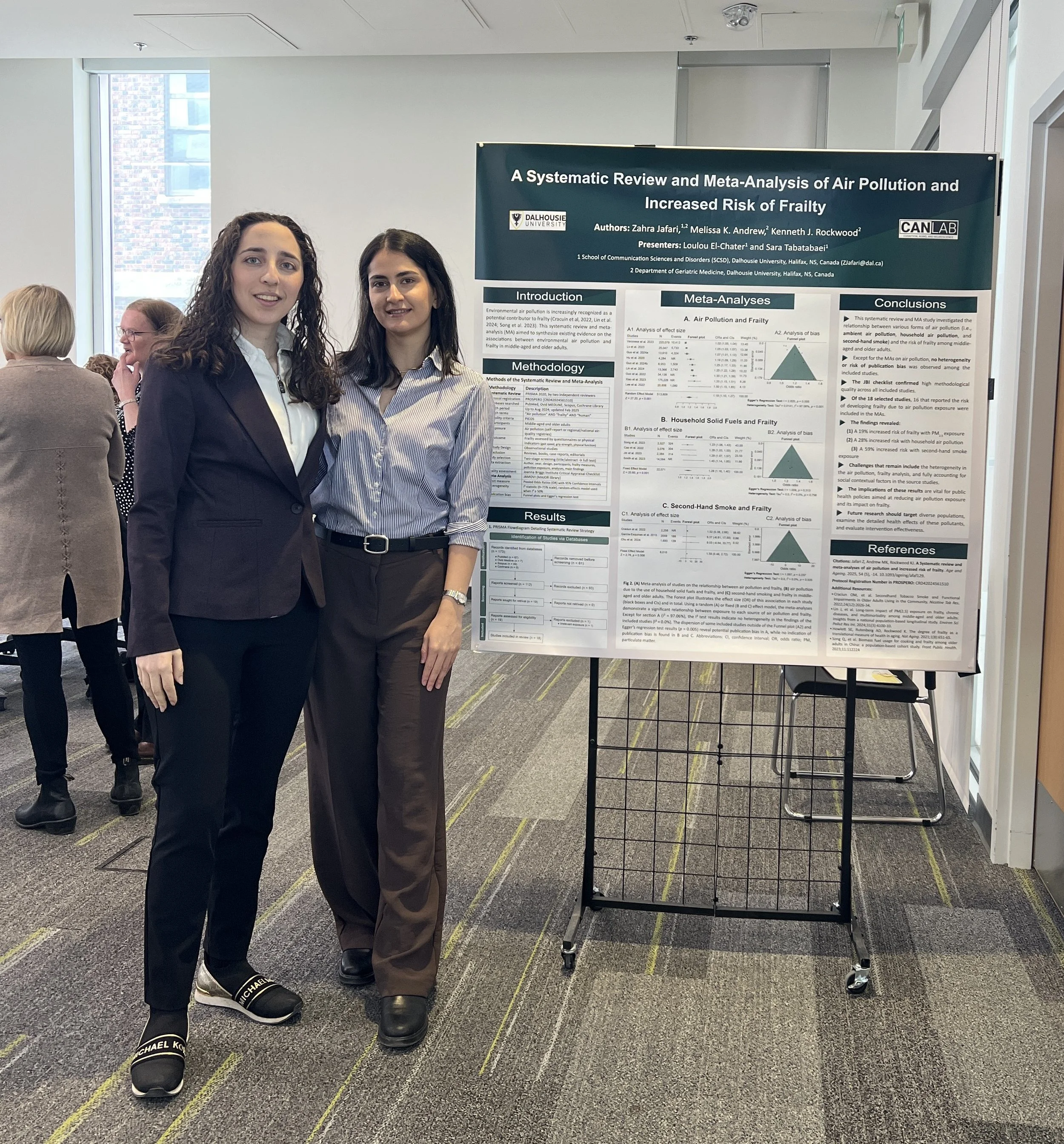 Congratulations to Loulou El-Chater and Sara Tabatabaei, our first-year Master’s Audiology students, for presenting our lab’s project, “A Systematic Review and Meta-Analysis of Air Pollution and Increased Risk of Frailty,” at the 10th Anniversary Conference of the Center for Transformative Nursing and Health Research (CTNHR) at Dalhousie University. It was a peer-reviewed abstract and poster session, and they were awarded 2nd place and gift cards for their work.