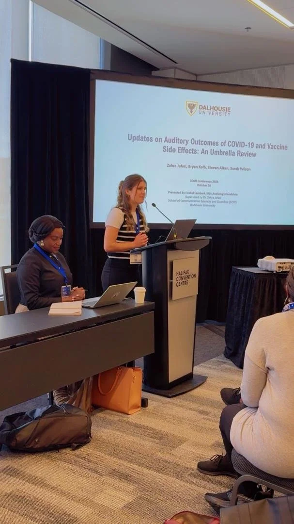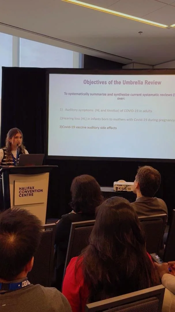 Isabel Lambert, the first-year Master’s student in Audiology, presented our work, “Updates on Auditory Outcomes of COVID-19 and Vaccine Side Effects: An Umbrella Review”, at the 2025 Canadian Conference for Global Health (CCGH2025), held from October 24–28, 2025, at the Halifax Convention Centre.