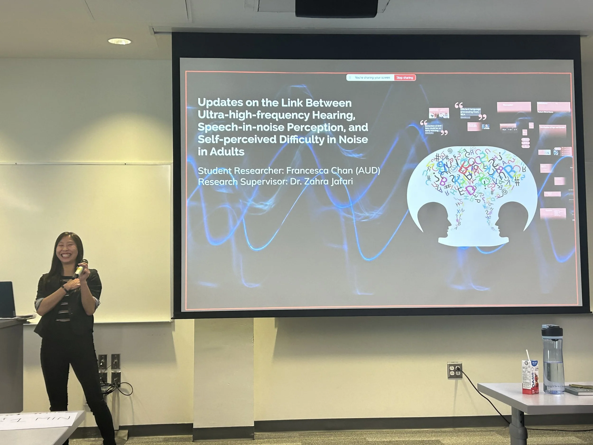 Warm congratulations to Francesca Chen on the successful presentation of her Master’s in Audiology research project, “Updates on Ultra-High-Frequency Hearing, Speech-in-Noise Perception, and Self-Perceived Difficulty in Noise in Adults,” at the SCSD 2025 Research Day. We wish her every success as she continues to grow and advance in her professional journey.